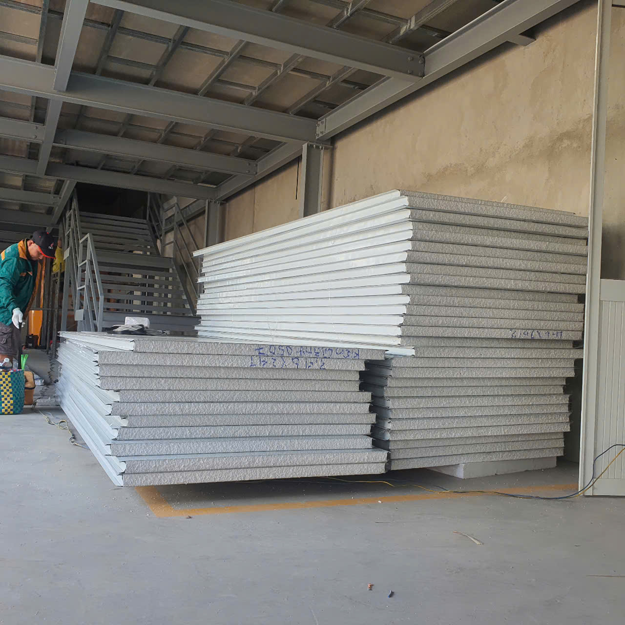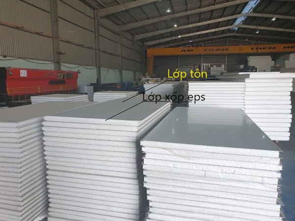 Vách panel EPS được cấu tạo với phần lõi xốp EPS có khả năng cách âm và cách nhiệt hiệu quả. 2 lớp tôn mạ kẽm được phủ lớp sơn tĩnh điện bên ngoài giúp công trình có tính thẩm mĩ và độ bền lâu dài.